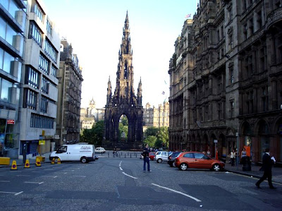 After a quick tour of the oldest house in Glasgow, and a bite to eat at a little pub, we continued our short journey to Edinburgh. It is only about an hour and a half from Glasgow, although it was hard to tell where the cities ended and began. We were terribly lost when we first got to Edinburgh (error on the part of the navigator!), but again, we got to see more of the city than planned. This monument to Walter Scott stands along the famous Prince’s Street.