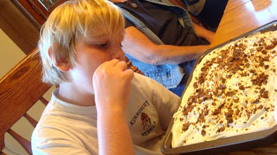 We had a family birthday supper last night, complete with Derek’s requested Panago pizza and homemade turtle cake. Carl, Chris, Bob, and Dylan joined us for a great evening of laughs and hugs.