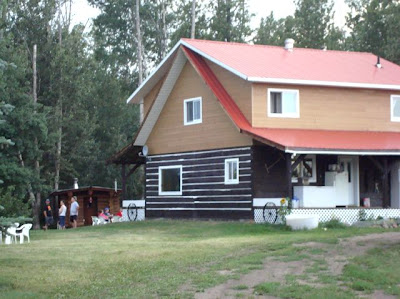 After a few days at home, I hit the road again, this time to lovely Valleyview, Alberta. Clem’s sisters, Chris and Cathy, and I attended the wedding of their cousin’s daughter, Tanya and Adam. I had never been to that part of our great country and really enjoyed the drive and the views. It is four hours north of Edmonton, all on divided highway, so the drive, though long, is quite easy. We arrived Friday evening and headed out to Spirit Creek Ranch to gather with other friends and relatives. Rick and Jo-Anne built their house from trees they cleared from their own land. It is a beautiful farm, and was all set up for the wedding.
