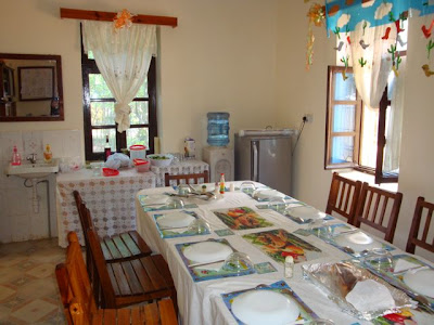 After our first supper in Ussongo, Father Chuwa, his assistant, Father Joachim, and the workers, Maggie, Grace, Bertha, Devota, and Joyce, held a welcoming celebration for us, on the veranda, of course! Most Tanzanian celebrations of this sort include a cake, which the hosts cut into pieces and feed to their guest on toothpicks! It is quite interesting and amusing! This was our cake, before the official cutting.