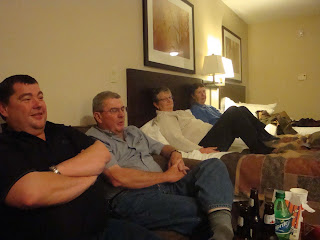 This is my cousin, Mike, and his wife, Korryn, who live in Weyburn and let us invade their home. They are good sports! You’ll also note Derek in the background, on his phone, as usual!
