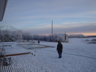 While searching for my reminder photo, I came across this one of Derek after the first snow of the season. This was the sight that greeted me when I drove into the yard that day:
