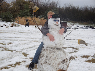While searching for my reminder photo, I came across this one of Derek after the first snow of the season. This was the sight that greeted me when I drove into the yard that day: