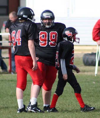 Clem says he looked pretty good out there. He played center on the offensive line, snapping the ball, and was the kicker. He also played on the defensive line. He was a tired boy by the end of game two!
