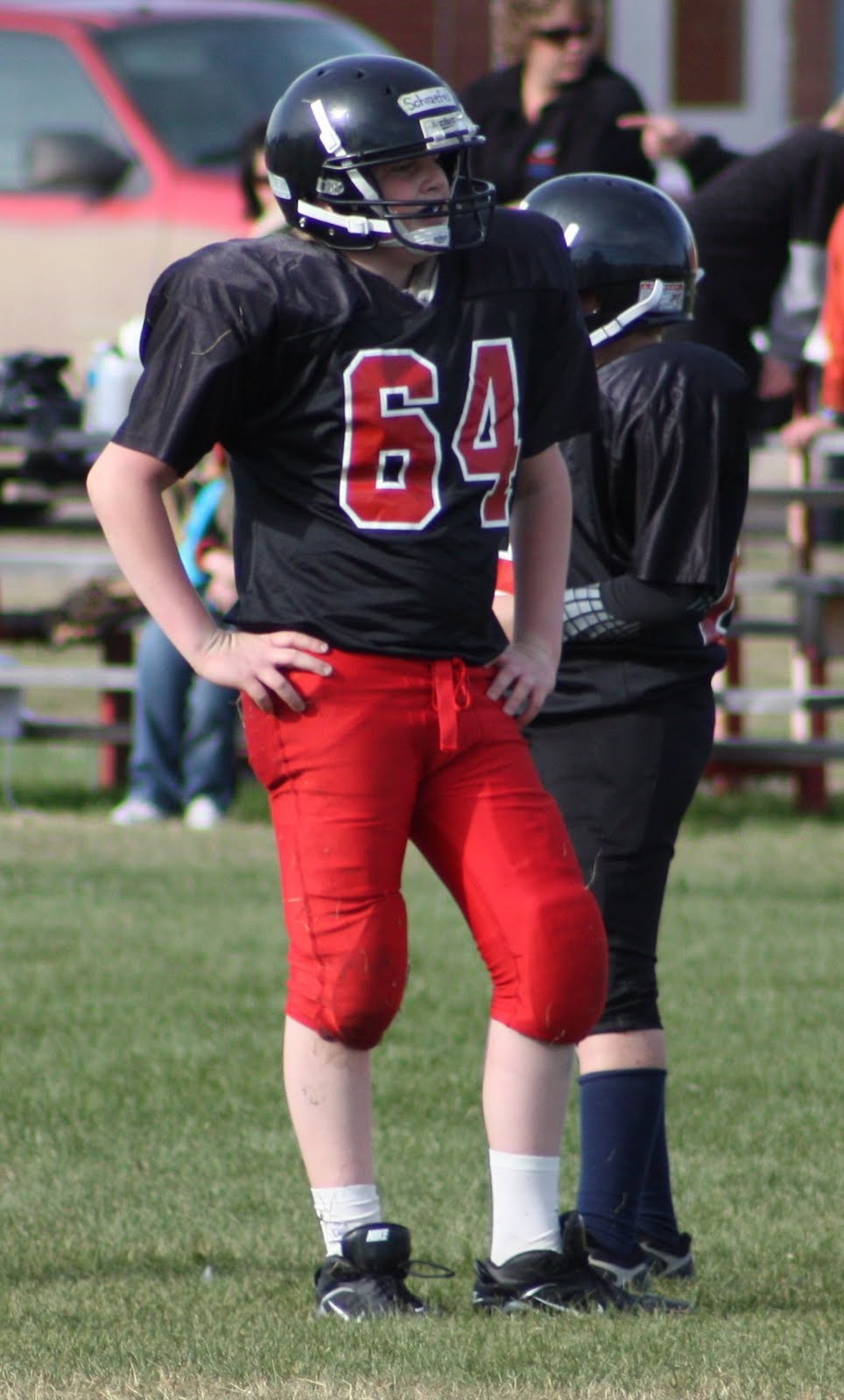 Clem says he looked pretty good out there. He played center on the offensive line, snapping the ball, and was the kicker. He also played on the defensive line. He was a tired boy by the end of game two!