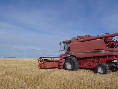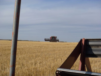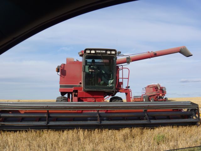 Harvest is over for another year. And what a long, long, drawn-out affair it was. What with rain, frost, break-downs, and cool weather, I wasn’t sure we’d ever finish. But we did. Yesterday afternoon, with my wonderful sister-in-law and super-sweet niece here as witnesses. And it was a gorgeous fall day. Close to perfect, in fact. After we returned from the rummage sale, where Copper found a beautiful dancing dress (it’s really a flouncy slip kind of thing, but we didn’t let on) and a snowball (styrofoam craft ball) and impressed the ladies there with her math skills, Stephen gave our visitors a ride on the combine.