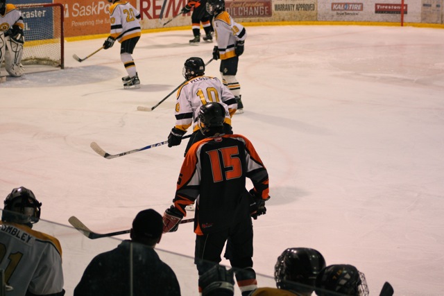Stephen has one more hockey game left in his minor hockey career. The Midgets surprised everyone, themselves included, by taking the league’s best-of-three final to the third game, so it’s off to Dodge for a barn-burner on Friday. After that, he can get his very long black and orange hair cut off!