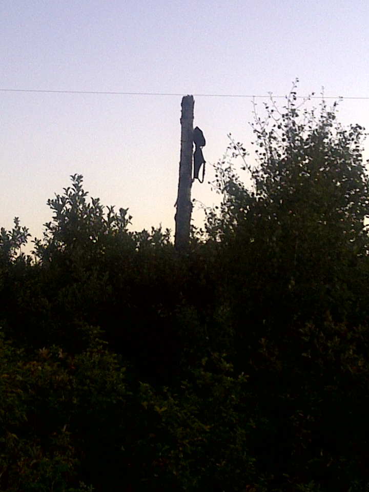 2. An item of clothing, normally worn by women for support, adorning a power pole at Attons last year. Also made me giggle.